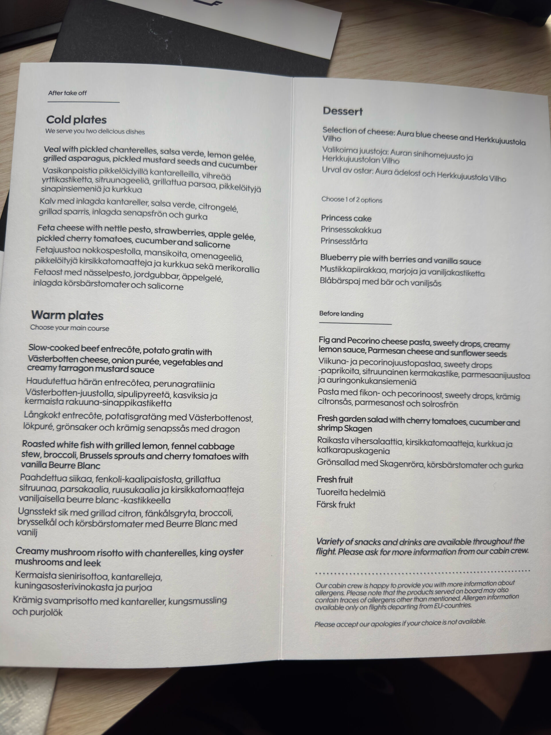 Conclusion: I highly recommend flying Finnair Business Class on their A350-900. The seat is very comfortable, the food is exceptional, and all the in-seat features are impressively high-tech. The only downside was the slow WiFi, which could be an issue for anyone needing to work. If Finnair were to upgrade to ViaSat or Starlink on their A350-900s, it would be the perfect choice for business travelers who need to stay connected. The service onboard was friendly and a step above the standards.