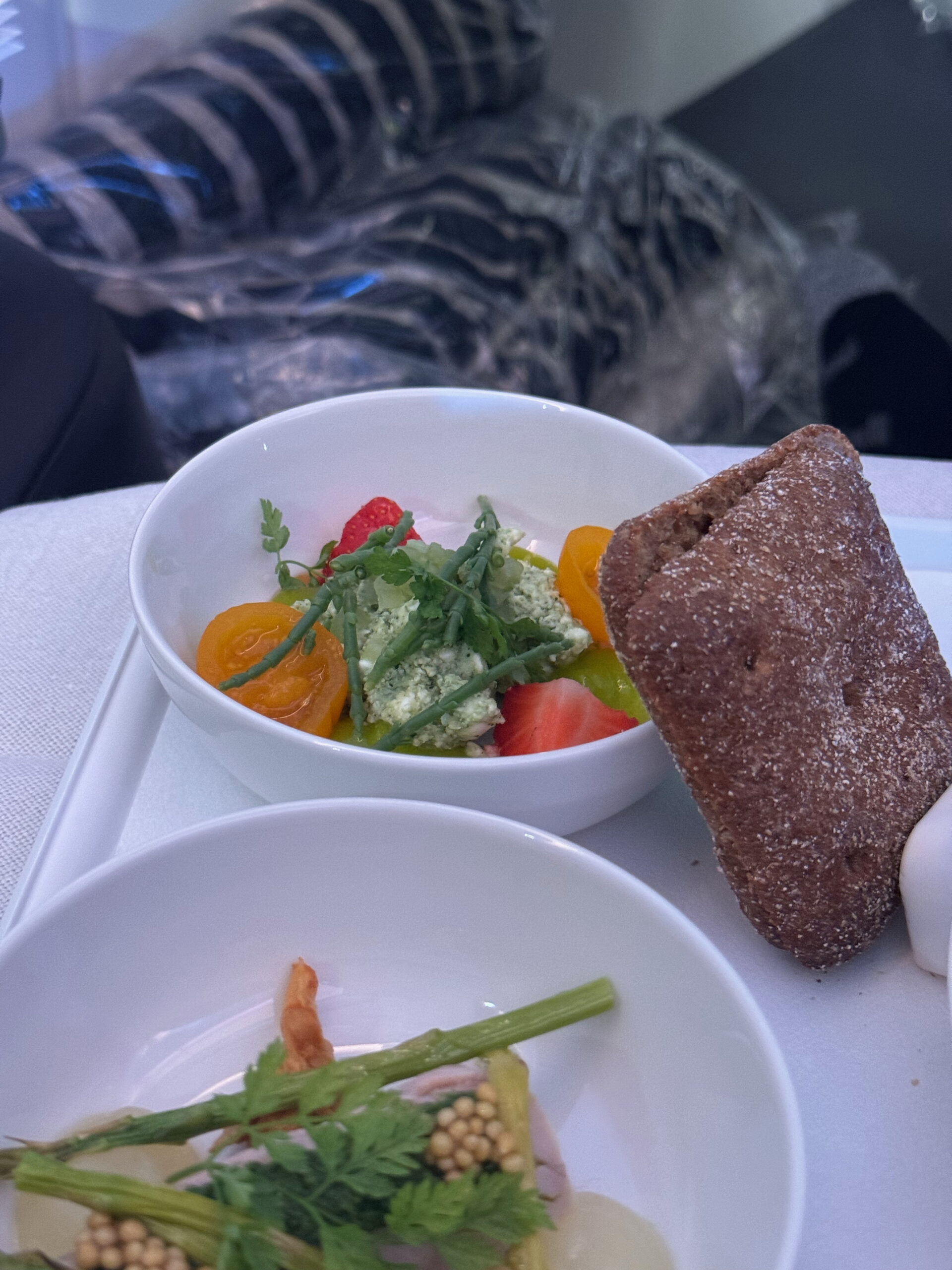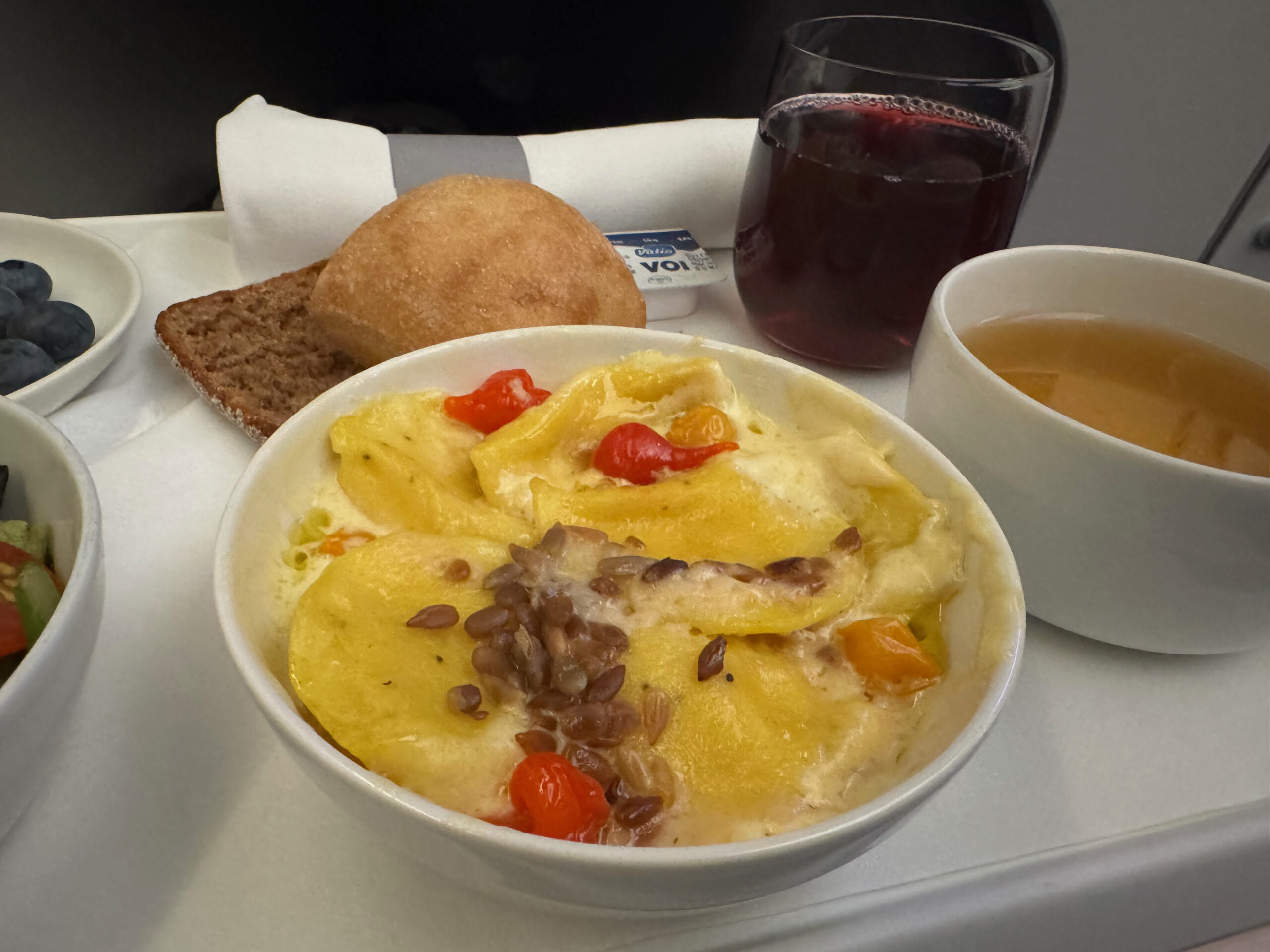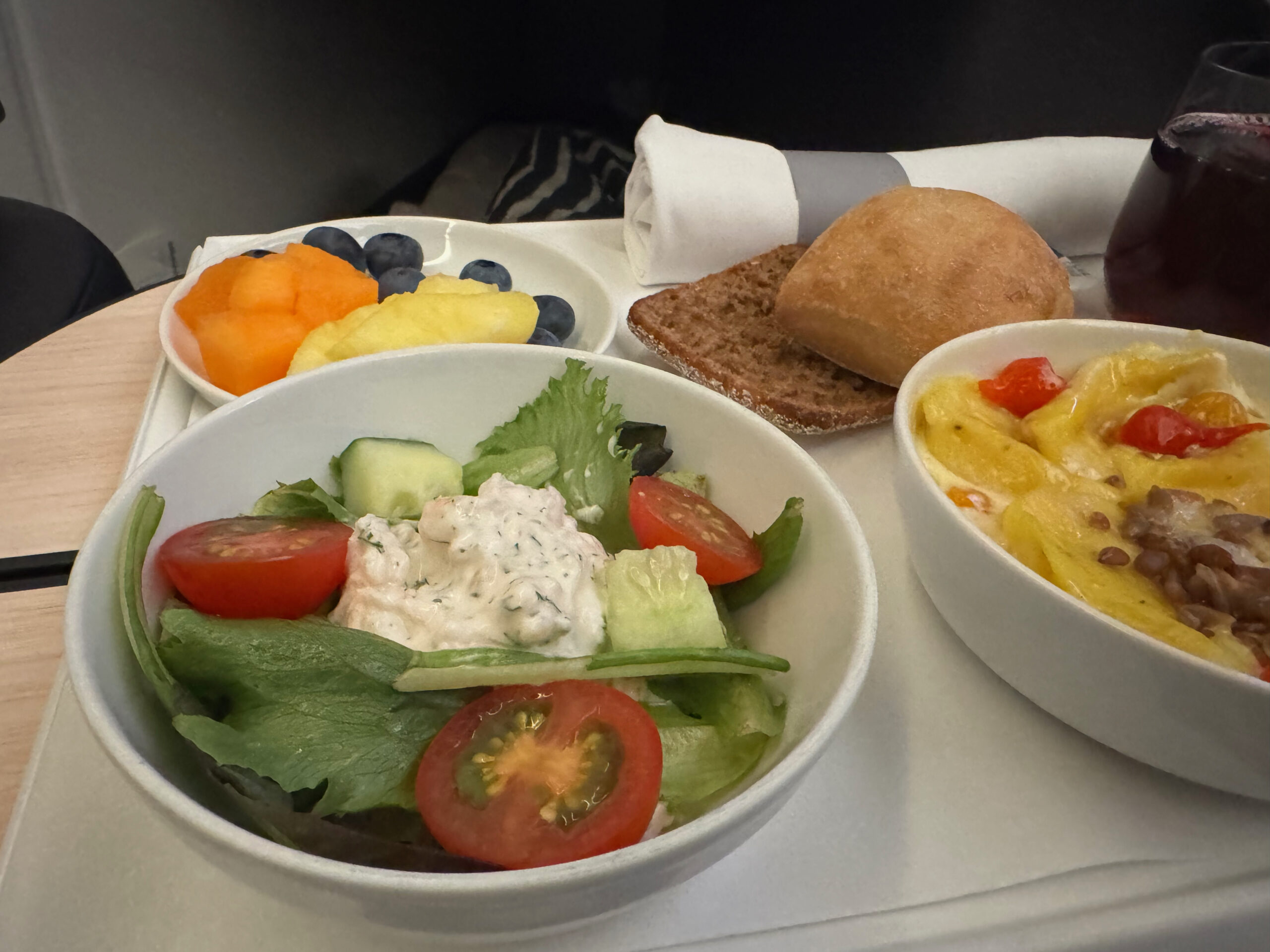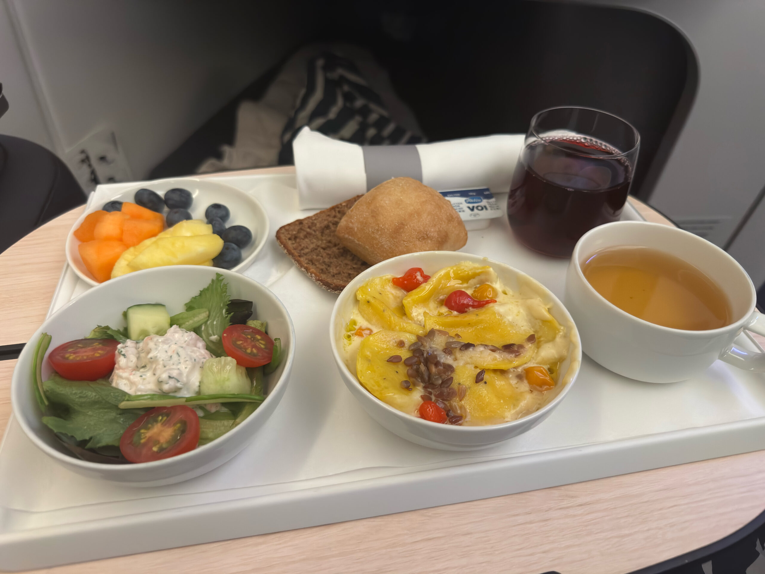 Before landing, a lunch service was offered, and I opted for the fig and pecorino cheese pasta, accompanied by a fresh salad and fruit.