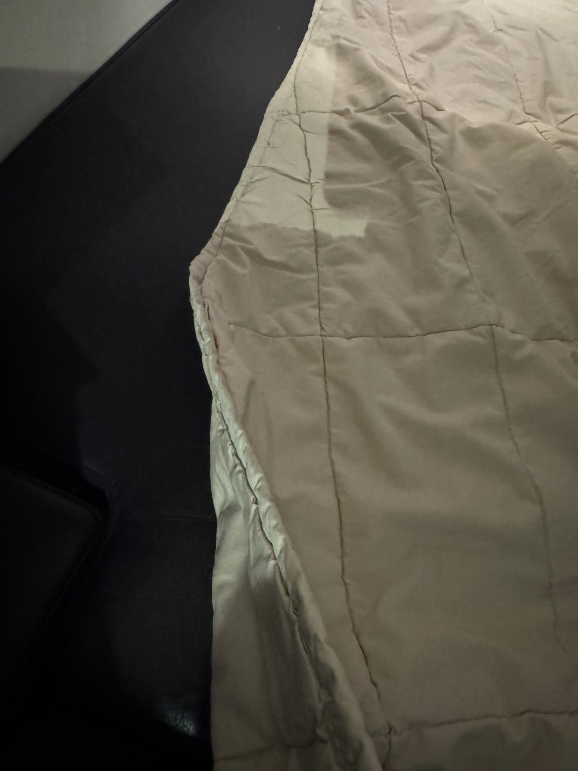After the meal service, I finished a movie before settling in for some sleep. Although the mattress pad was quite thin, the seat itself was firm enough to provide a comfortable sleep experience. You simply slide down to transform it into a lie-flat bed. I managed to get around five hours of rest.